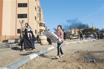 在加沙地带南部城市汗尤尼斯,人们逃离家园。 新华社发