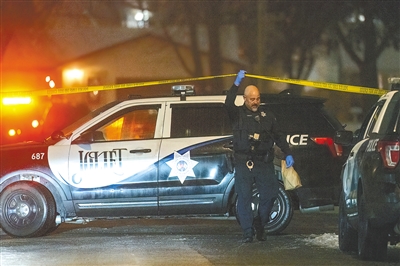 1月22日,警察在美国伊利诺伊州乔利埃特市的案发现场工作。新华社/美联