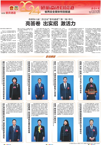 1月24日14时,省政协八届二次会议“委员通道”(第二场)集体采访活动,在海南广场9号楼一楼中庭开启。8位来自不同界别、不同行业的省政协委员聚焦发展重点,回应社会关切。