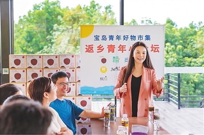 周金枝(右一)与海南返乡青年分享创业经历。(受访者供图)