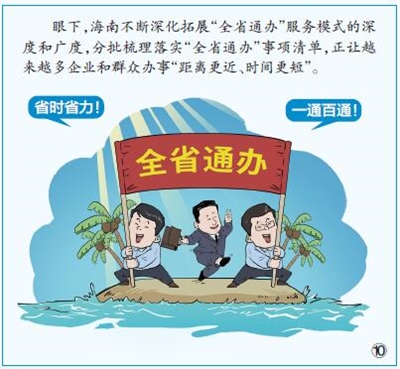 民之所望,政之所向。随着自贸港建设深入推进,人员流动性越来越大,服务事项“全省通办”,成为民生刚需。而且,互联网的便利性、数据共享的推进等,都为“全省通办”创造了条件。我省加快推进“全省通办”,不仅是与时俱进、顺民心之举,同时是对“全省一盘棋、全岛同城化”理念的践行,让群众不分地域,皆能享受便利服务,这彰显了海南的服务温度,有利于增加群众的归属感。