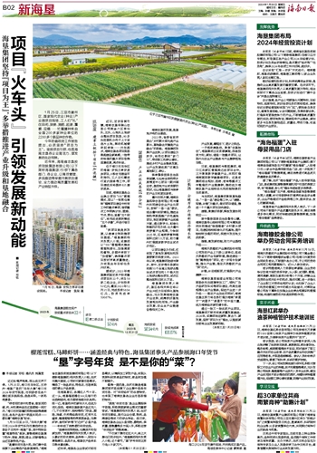通过一批又一批优质产业项目,海垦集团不断夯实高质量发展基础。2024年,该集团将迎新势、聚合力、谋发展,坚持“项目为王”理念,以超前谋划培育企业发展新动能。
