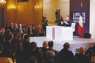 1月16日,法国总统马克龙在法国巴黎的总统府出席大型记者会,呼吁建设“更强大”的欧洲,并表示欧洲面临的“最大的风险”仍然是乌克兰危机。新华社/法新