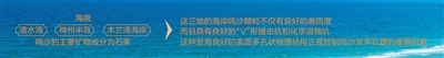 经专家分析,清水湾、神州半岛和木兰湾海岸鸣沙的主要矿物成分为石英,这三地的海岸鸣沙颗粒不仅有良好的磨圆度,而且具有良好的“V”形撞击坑和化学溶蚀坑,这种发育良好的表面多孔状物理结构正是控制鸣沙发声机理的重要因素。此外,清水湾、神州半岛和木兰湾均位于海南岛东岸,具有波浪作用激烈、潮流较弱的特点,波浪是塑造岸滩剖面的主要动力条件。由于波浪对海沙的分选作用,海岸鸣沙的沙粒更为均匀、洁净。专家在考察中也发现,海南的海岸鸣沙广泛分布在潮间带和潮上带。