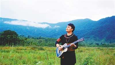 这把吉他的主人,是海南黎族本土音乐人阿侬子黎。背着这把融入黎族文化元素的吉他,他曾在海口的酒吧驻唱,以获取生活来源;曾在北京、安徽、广西的街头弹唱,以寻求表演机会;曾参加各类比赛,登上大大小小的舞台展示自我……如今,他带着一首还未发表的歌曲《从五指山走出来》(又名《我是有背景的人》),回到村里寻找灵感、打磨歌曲。