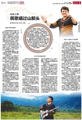 “我希望通过这首歌,让更多人意识到我们的故土与文化的珍贵,加入传唱黎族民歌的队伍。”阿侬子黎说,如今很多年轻人不会讲黎语,会唱黎族民歌的人更是少之又少。近几年,他经常回老家,在当地校园或村庄里教黎族的孩童唱民歌。