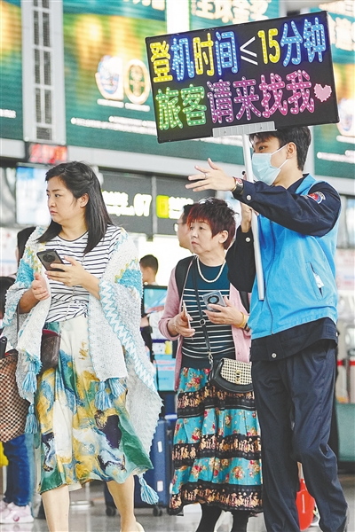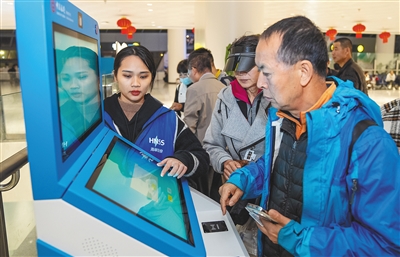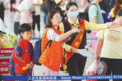 ③ 近日,三亚机场工作人员引导旅客值机。 本报记者 王程龙 摄