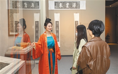 衣袂飘飘,尽显霓裳雅韵;裙裾飞扬,一览宋韵之美。走进展馆,身着一袭宋服、头顶特色发饰的讲解员,成了馆内一道靓丽的风景线。