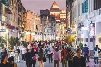 近日,海口市民张琴到王府井海垦广场购置新衣。“过去周边中高档次的商场很少,现在我们休闲购物方便很多。”在张琴看来,海口的商场如今不仅业态多元,各类新奇的文旅活动也十分吸睛,丰富了大家的业余生活。