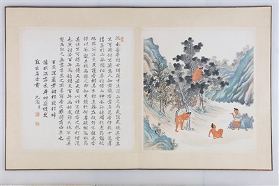 ■ 吴辰“千古风流 不老东坡——苏轼主题文物展”上,有一套清代的《琼黎风俗图》(册)颇为引人注目,它共有15开页,以图文相配的形式记录了清代海南黎族人民建屋、编织、耕种、对歌、嫁娶、渔猎、贸易、涉水、谈判等社会风俗,其中还有黎族先民采集沉香的画面。