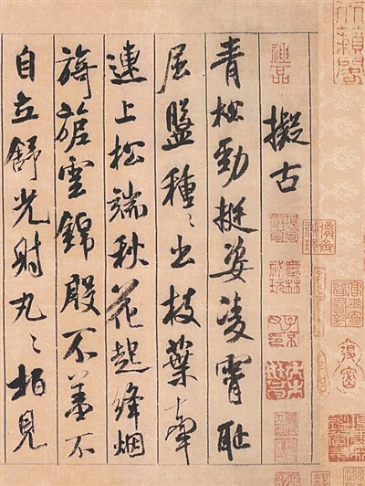 米芾《道林帖》,一级甲等文物。米芾早期作品,“翰牍九帖”之一,他根据苏轼的建议,学习魏晋书法,此时以王羲之、王献之父子为主,在此帖中可窥二王之风。 故宫博物院藏