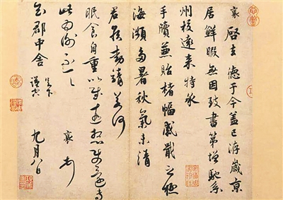 蔡襄为人忠厚正直,学识渊博。史料里称他独创的“颜体”端劲高古,容德兼备,这一点,从他的《京居帖》里大抵窥得出端倪。《京居帖》是一封蔡襄写给友人的问候信札,1062年作,现藏于北京故宫博物院。《京居帖》其前半部分以行书为主,后半部分逐渐转为草书,用笔清隽秀润,体势自然流动,兼有王羲之和颜真卿风格的特色,集中反映了蔡襄在这两种书体上的高超造诣。事实上,写《京居帖》时的蔡襄,行书基本到了人书俱老的程度,其形式、笔势、笔力以及速度都进行了深化,使得晋唐意韵和法度都流注于笔端,真正做到了“心手相应,变态无穷”的淳厚和悠游。是蔡襄行书风貌的典型代表。