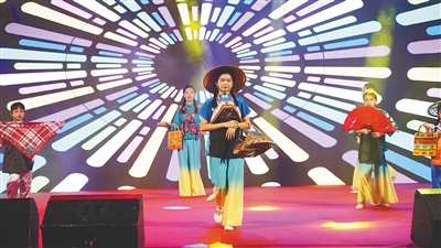 当晚压轴的节目是一场别出心裁的疍家旧时服装物件秀。踏着节拍,疍家“模特”一边走秀,一边展示着门帘头、婚扇、儿童背带、手提袋等,这些鲜艳精美的手工艺品都是疍家妇女一针一线制作而成。“这些都是我们从民间搜集而来,一个个老物件浓缩着疍家生产生活日常,美的是其中的历史文化。”李小丹说。