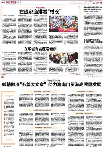 新的一年,工行海南省分行将牢牢把握高质量发展这个首要任务,锚定金融强国建设目标,持续有力高效做好“五篇大文章”,为自贸港经济发展注入更多金融“活水”。(工行海南省分行供稿)