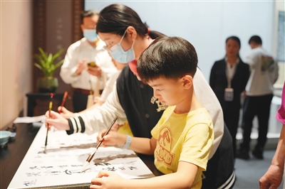 2月1日,苏轼主题文物展现场,观众描摹苏东坡笔迹。 本版图片由 本报记者 张茂 蔡潇 摄