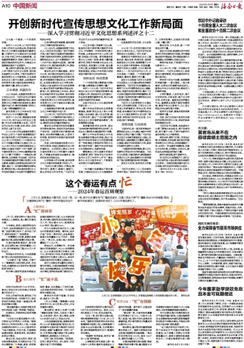 从2018年8月在全国宣传思想工作会议上用“九个坚持”高度概括我们党对宣传思想工作的规律性认识,到2022年10月在党的二十大报告中从五个方面重点部署文化建设工作;从2023年6月在文化传承发展座谈会上明确文化建设方面的“十四个强调”,到对宣传思想文化工作作出重要指示提出“七个着力”的要求……举旗定向、谋篇布局,正本清源、守正创新,习近平总书记准确把握世界范围内思想文化相互激荡、我国社会思想观念深刻变化的趋势,提出了一系列新思想新观点新论断,帮助我们深入领会宣传思想文化工作在党和国家工作全局中的重要地位和突出作用。