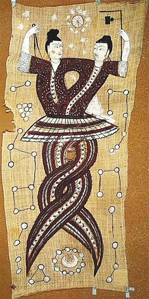 从历史传说上看,中华始祖伏羲传为雷神的儿子,其在古籍中的形象一向是蛇身人首。在古代石刻画像和砖画中,也常有人首龙(蛇)身的二人像,据说为伏羲和女娲,华夏先民由此繁衍生息。既然伏羲是龙所生,后世华夏子孙都自称“龙的传人”也就不奇怪了。
