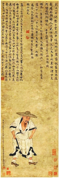 翁方纲治学严谨,经过长期的考证,终于得出东坡笠屐图“当是伯时元符中归龙眠山居后作”,即李公麟确实画过苏东坡的结论。