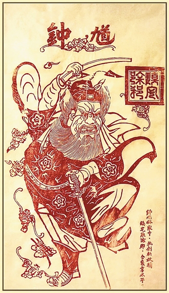 年画的花样再怎么多,一对门神是必不可少的。因为门神可驱邪迎祥,护佑全家平安。门神的传说,最早见于《山海经》,晋代的《荆楚岁时记》记载道:“贴画鸡户上,悬苇索于其上,插桃符其旁,百鬼畏之。”东汉时转变为神荼郁垒驱邪的说法。每一种说法都是美好的,藏匿其中的故事都是美好的,传递的期盼亦是美好的。我正儿八经读的第一本书就是《山海经》,稚嫩的心灵充满了无穷尽的想象。