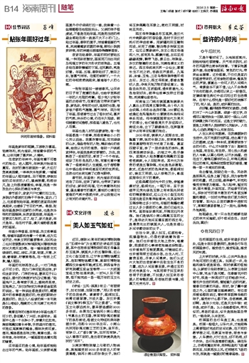 一张张年画如一缕缕春风,让平淡的日子有了斑斓的色彩,也给辛苦奔波一年的人无限的希冀。很少有人计较年画的内容细节,在意的是它带来的新气象、新色彩,夸张的也好,渲染的也罢,每家每户都热气腾腾、喜气洋洋。因为有了年画,即便春节过去了很长时间,喜庆的气氛、快乐的心情,仍在长久延续。哪怕随着时间推移,那些画儿褪色了,也无人在意。