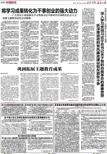 广大党员干部表示,主题教育开展以来,全党在以学铸魂、以学增智、以学正风、以学促干上取得了明显成效。要深入贯彻落实习近平总书记对巩固拓展主题教育成果的重要要求,不断将学习成果转化为干事创业的强大动力,为强国建设、民族复兴伟业作出新的更大贡献。