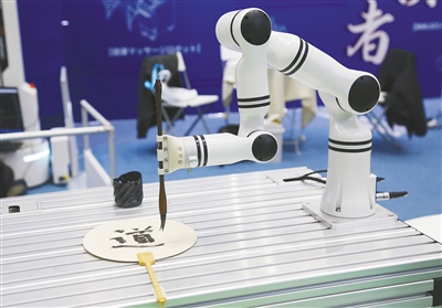 图为在日本东京举办的日本国际机器人展上拍摄的一款会写书法的智能机器人。