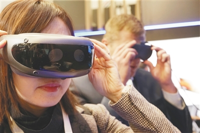 在美国拉斯维加斯消费电子展上,人们感受中国企业京东方研发的智能产品。