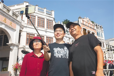 2月1日,卢伟一家在海口骑楼老街留影。 本报记者 陈若龙 摄