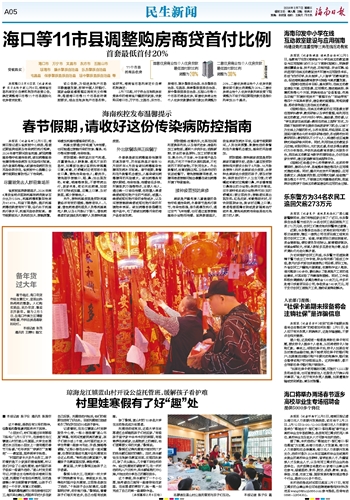 2月7日起,对于符合当地购房政策条件的海南省户籍居民家庭,贷款购买海口市、万宁市、文昌市、东方市、琼海市、陵水黎族自治县、乐东黎族自治县、屯昌县、保亭黎族苗族自治县、琼中黎族苗族自治县、五指山市等11个市县的商品住房,首套住房商业性个人住房贷款最低首付款比例调整为20%,二套住房商业性个人住房贷款最低首付款比例调整为30%;二套住房商业性个人住房贷款利率政策下限调整为不低于相应期限贷款市场报价利率加20个基点。