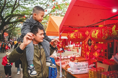 除了各大景区,春节热潮还在琼海各乡镇蔓延开来。2月1日,在琼海市石壁镇,“龙年去赶集”乡镇新春集市正式开业,摊位上的商品琳琅满目,五色粽、椰子糕、山兰酒等石壁特色农产品深受欢迎,吆喝声、叫卖声、欢笑声交织一起,处处洋溢着浓浓的年味。
