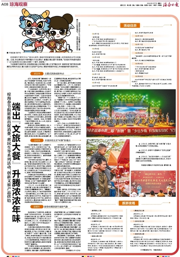 与此同时,为了增强旅游的文化内涵和服务品质,这个春节假期,琼海“端”出一道道参与性强、体验性高、趣味性浓的“文旅大餐”吸引游客。
