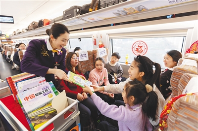 春运期间,铁路上海客运段在各趟列车上增设阅读角和流动书屋。新华社发