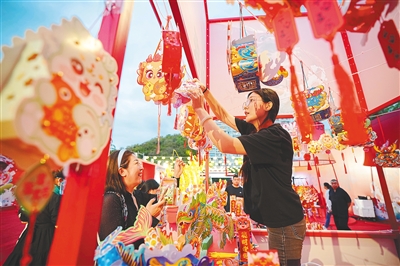 市民游客在市集上选购花灯。本组图片均由 王将就 摄