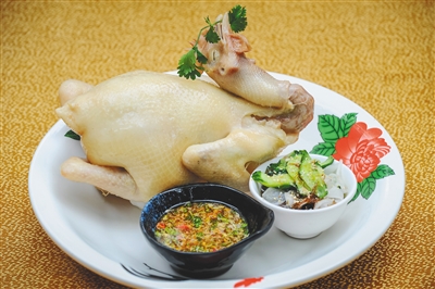 海南有俗语称:“无鸡不成席。”鸡的烹饪方法有多种,白切鸡是海南代表性传统名菜,在海口、文昌等地,白切鸡往往是年夜饭的固定菜肴。白切鸡的独特之处在于,最大程度地保留鸡肉的原汁原味。海南人做白切鸡,鸡肉的选料往往很讲究,通常以文昌鸡等本地优质土鸡为主。不得不提的是,蘸酱堪称海南白切鸡不可或缺的灵魂,蘸酱通常由蒜蓉、姜末、油和酱油调配而成,酱料的鲜、辣、香三重味道激发出白切鸡的鲜美。