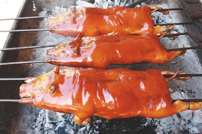 加工中的东方烤乳猪。 特约记者 孙清 摄