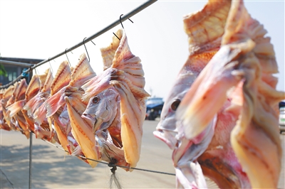 晾晒中的红鱼干。 本报记者 李天平 摄