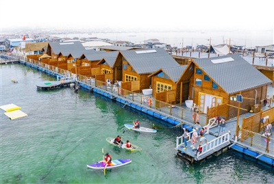 游客在陵水新村港的疍家渔排民宿享受度假时光。本报记者 王程龙 摄