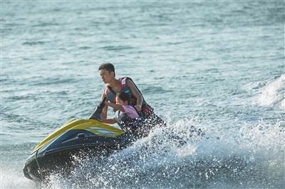游客在东方市八所港鱼鳞洲体验摩托艇游玩项目。通讯员 赵茜 摄