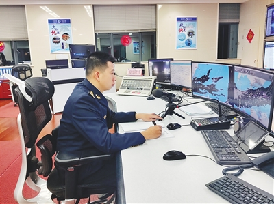 2月9日晚,琼州海峡船舶交通管理中心,值班人员在工作中。 通讯员 郑春玉 摄