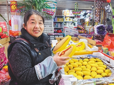 在天津一家水果店,店主在向顾客推销海南芒果。 本报记者 马珂 摄