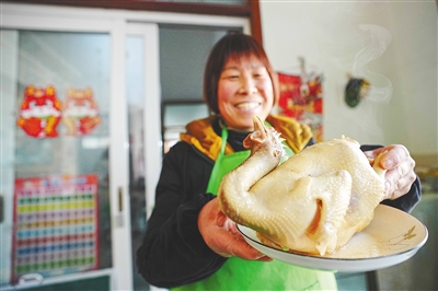 在河南新乡,白切文昌鸡成居民朱素霞家年夜饭主菜。 本报记者 王程龙 摄