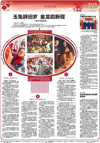 玉兔辞旧岁,金龙接新春。农历大年三十,在广袤的中华大地上,万家灯火庆团圆,家国同庆共此时。