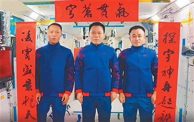 作为我国载人航天工程进入空间站应用与发展阶段后首个在太空过大年的航天员乘组,3名航天员特意穿上了喜庆的“祥云服”,把中国人自己的“太空家园”仔细装扮了一番。