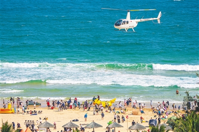 ②2月13日,在陵水清水湾海滨,游客们惬意享受度假生活。