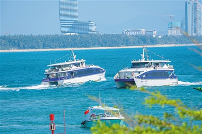 ①2月13日,游客乘船前往三亚蜈支洲岛旅游区。