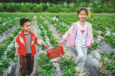 春节假期,市民游客走进琼海草莓基地采摘品尝,体验田园收获的乐趣。 特约记者 蒙钟德 摄