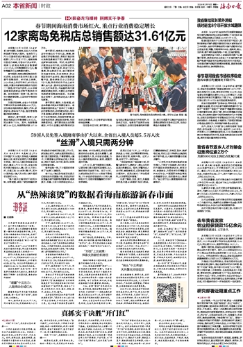 刚刚过去的春节假期海南旅游红红火火,坚定了我们前行的信心和步伐。让我们怀着这份美好与信心,以更加务实的作风、更加精细的服务,一刻不放松,迅速动起来、干起来、跑起来,跑出发展加速度,干出海南新精彩。