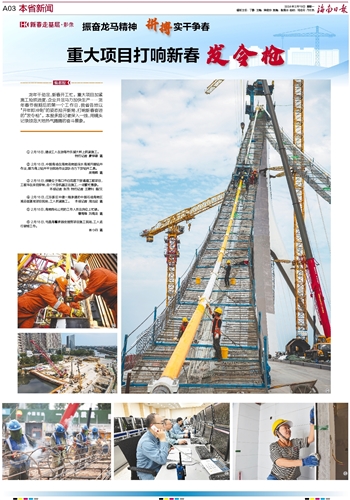 编者按龙年干劲足,新春开工忙。重大项目加紧施工抢抓进度、企业开足马力加快生产……龙年春节假期后的第一个工作日,我省各地以“开年即冲刺”的姿态抢开新局,打响新春奋进的“发令枪”。本报多路记者深入一线,用镜头记录琼岛大地热气腾腾的奋斗景象。