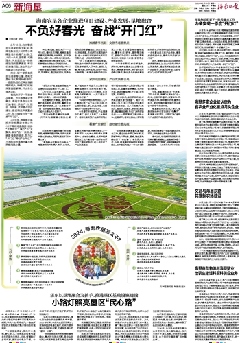 2024年,海南省农垦投资控股集团有限公司(以下简称海垦集团)坚持“农垦姓农”,着力“五”大聚焦、做到“四”个坚持,奏响新春奋进旋律,努力以“开门红”带动“全年红”,为海南自贸港高质量发展贡献海垦力量。