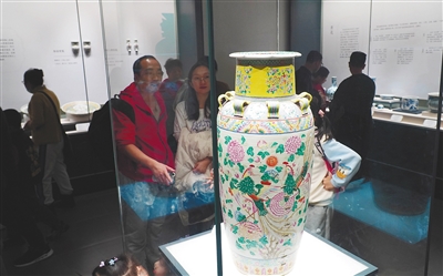 参观者在山东省青州博物馆观看馆藏文物。 新华社发